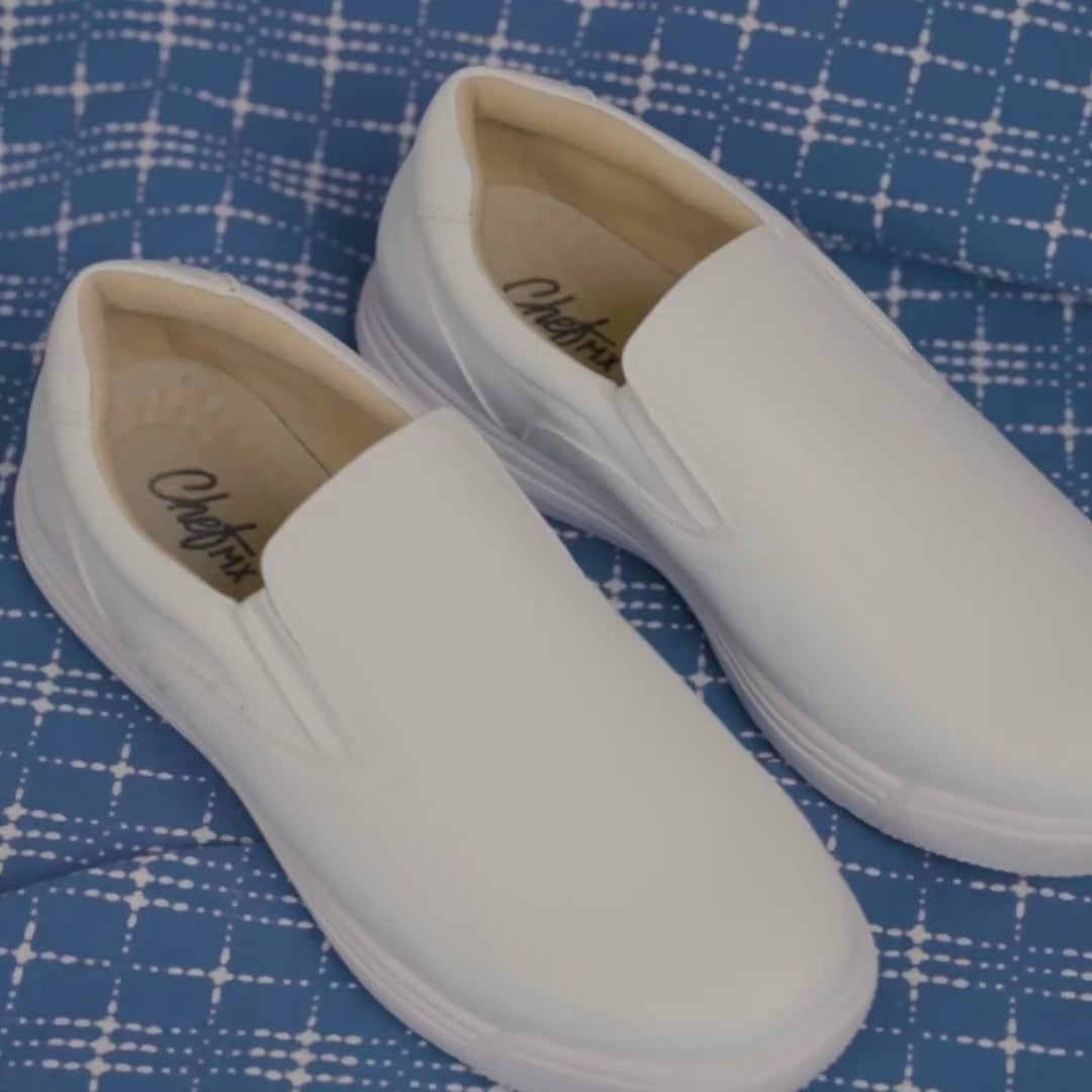 "Trabajo largas jornadas en cocina y estos zapatos son lo mejor que he usado. Cómodos, seguros y resistentes al agua. No los cambio por nada."
