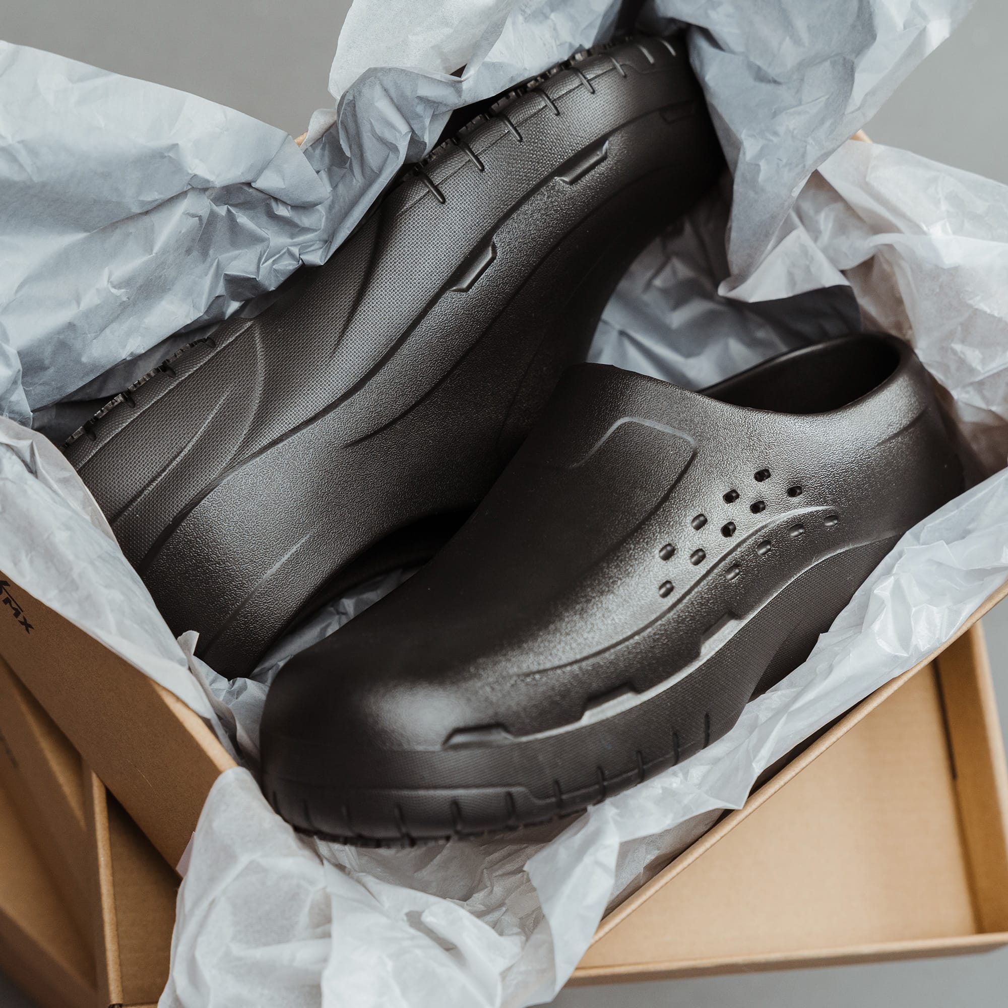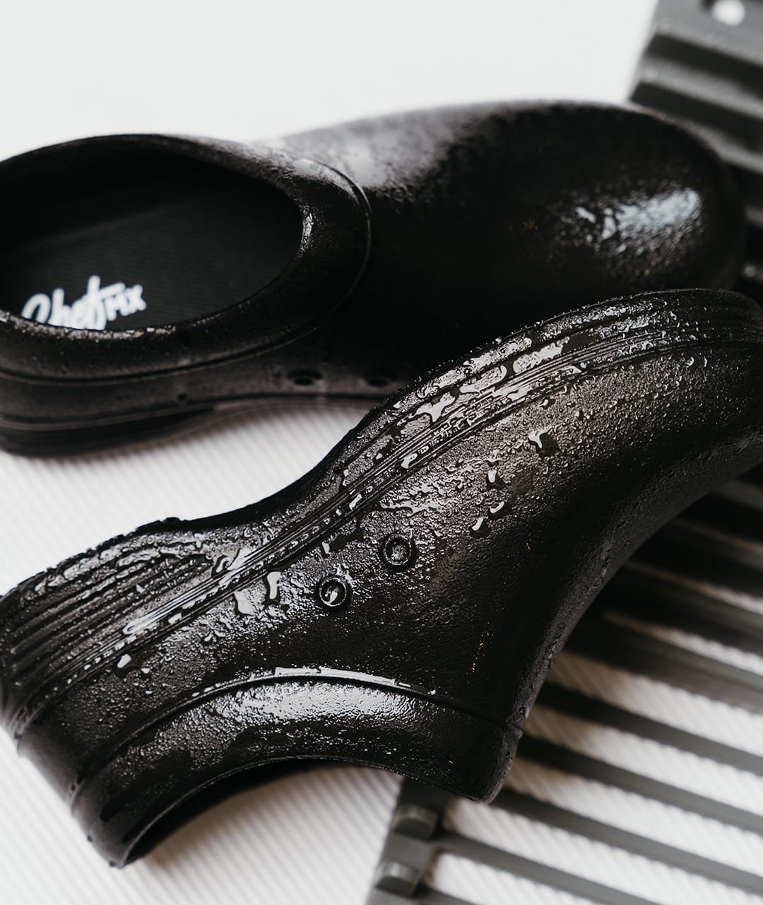 Suelas antiderrapantes y materiales resistentes al agua. Diseñados para mantenerte firme, sin importar el entorno.