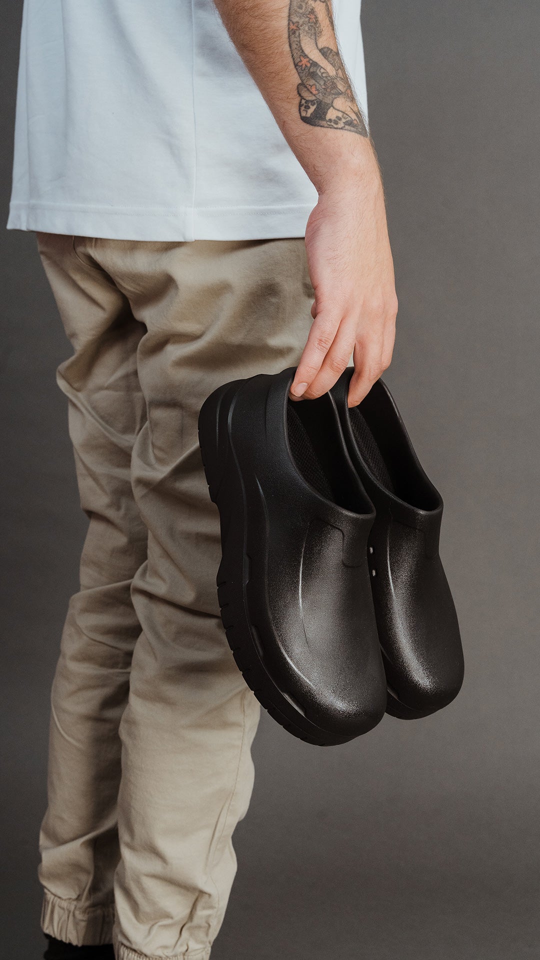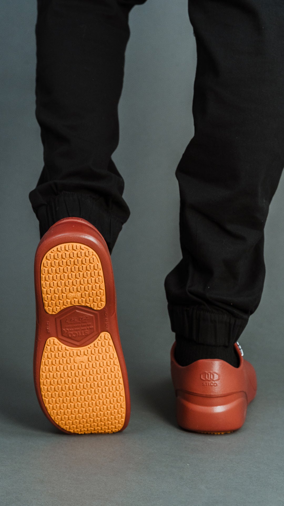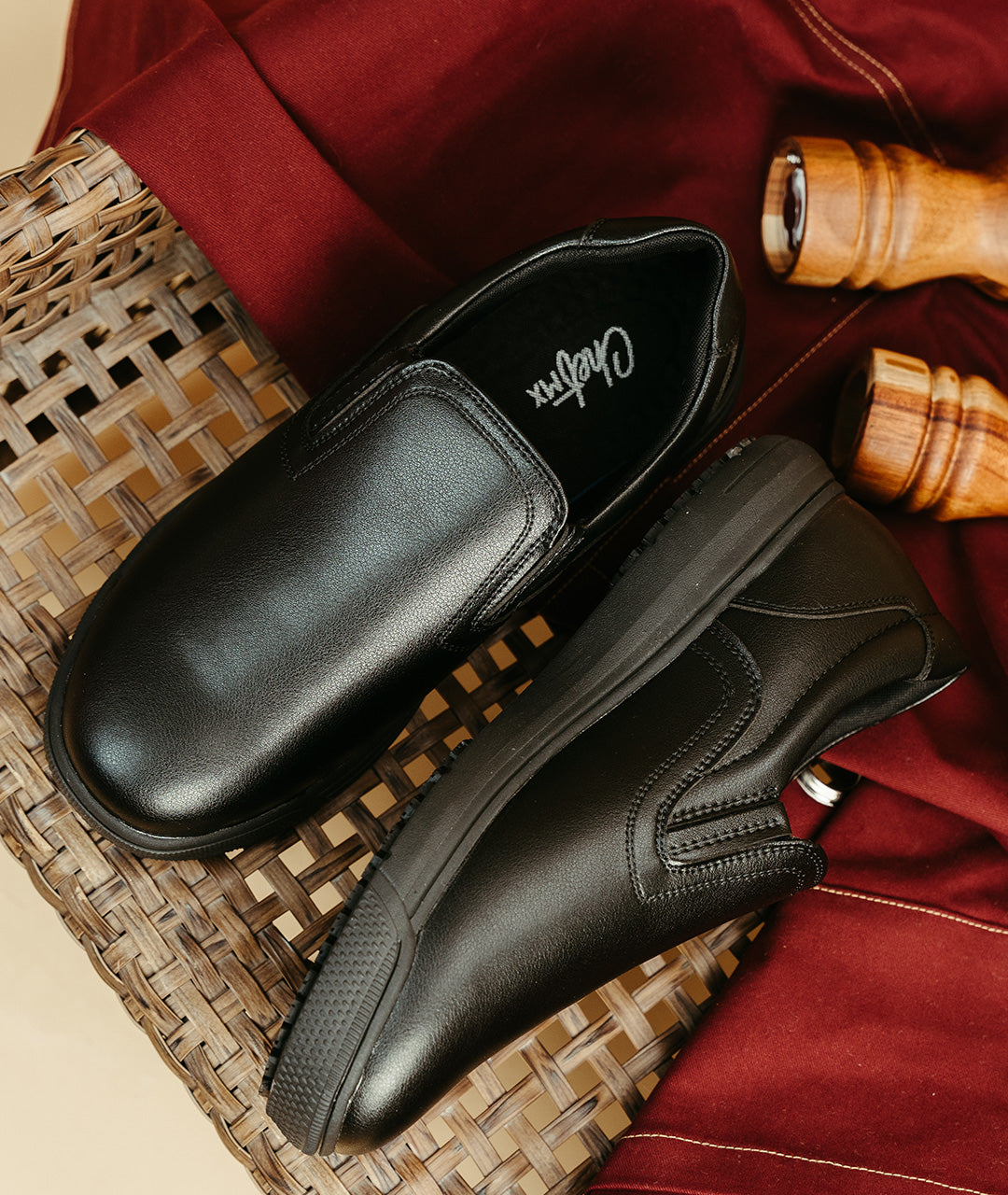 "Trabajo largas jornadas en cocina y estos zapatos son lo mejor que he usado. Cómodos, seguros y resistentes al agua. No los cambio por nada."